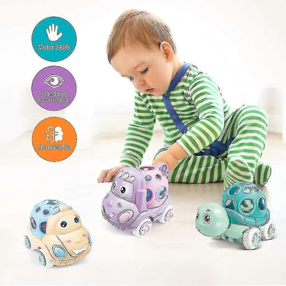 Rattle And Roll Car For Toddlers, Push And Go Toy With Soft Rubber 3 Pieces