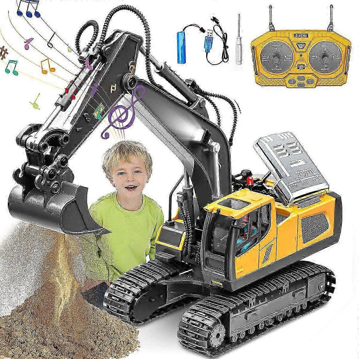 RC Excavator, Rechargeable Remote-Controlled Construction Truck with Sound Light Action Features