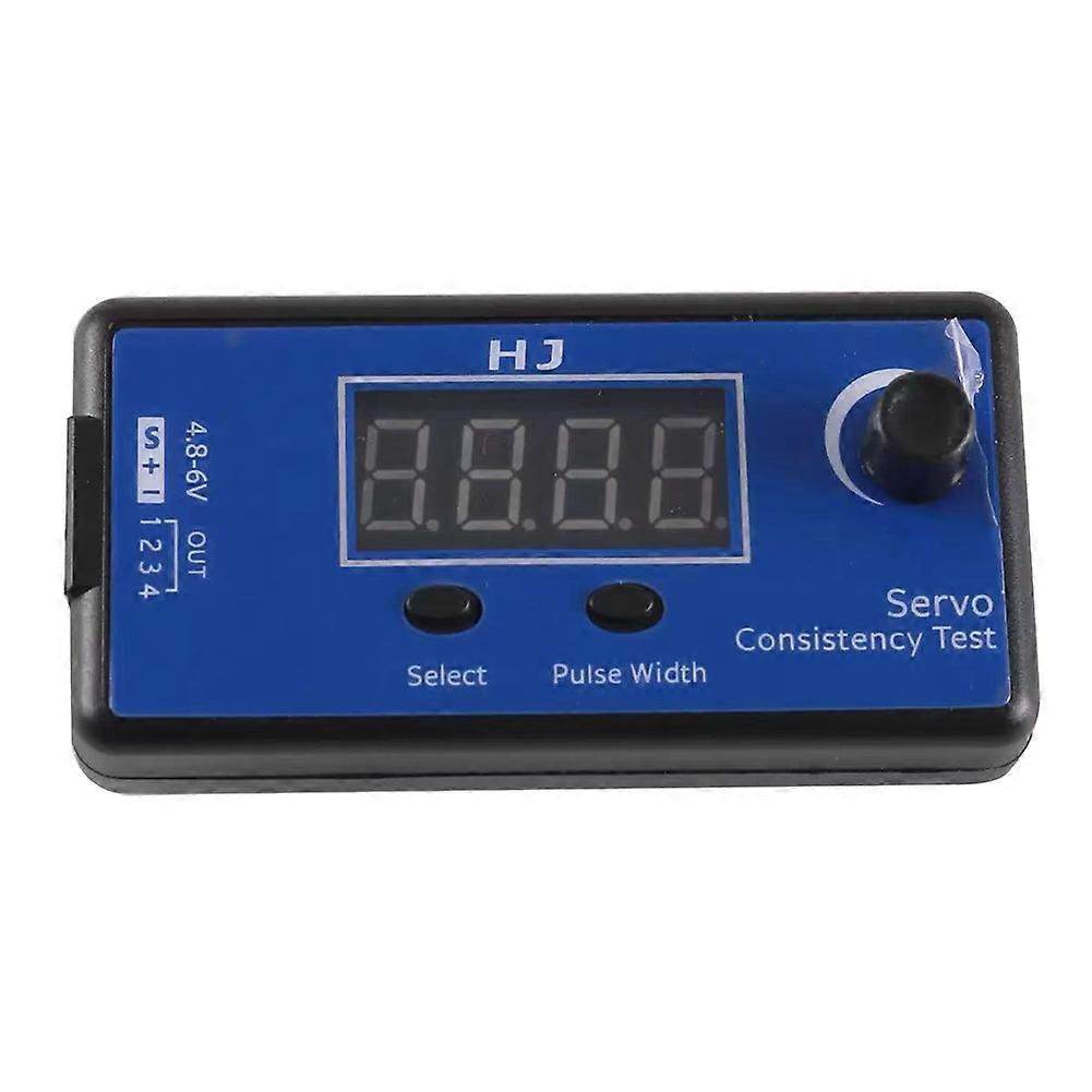 1. Synchronizes the output of the servo system and servo control output signals for precise control of servo performance. 2. Tests subtle changes between different servos. (1 millisecond = 1000 microseconds) Operating Voltage: 4.8-6.0V Dimensions: 75x38x15mm Weight: 26.2g Signal Width: 800-2200µs 1. 50H analog servo signal cycle, 20µs, frequency, 50Hz 2. 125H digital servo signal cycle, 8µs, frequency, 125Hz 3. 250H digital servo signal cycle, 4µs, frequency, 250Hz Instructions: Automatically enters manual mode upon power-up. Turn the potentiometer to increase or decrease the signal width. Press select again to select between center and automatic modes. Press PW to select a pulse width between 125H and 250H. Warning: Digital or analog signals should be adjusted using the corresponding servo system settings before plugging into the steering servo to avoid damaging the servo. Signal lines (+ and -) from top to bottom. Color:Black & Blue Material:plastic Package Contents: 1 * RC Servo Tester
