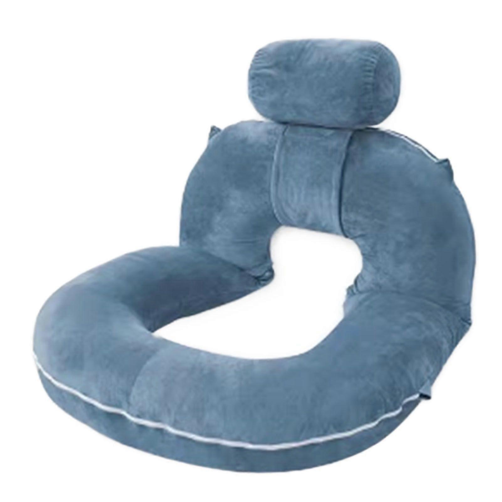 Reading Pillow U Shape Full Body Support Comfortable Skin Friendly Detachable Sit Up Pillow for Bed Navy Blue