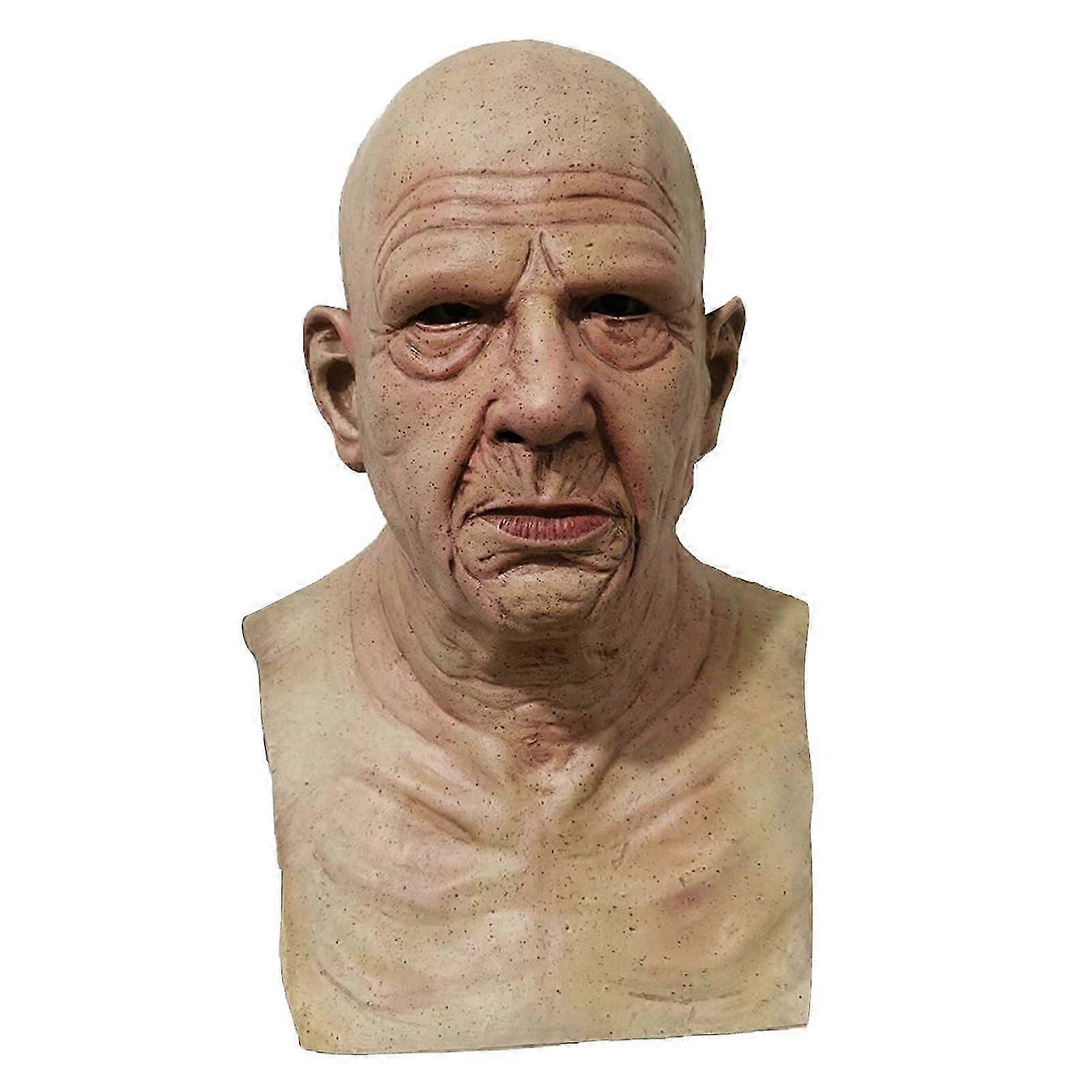 Realistic Bald Old Man Mask Latex Full Face Neck Helmet for Masquerade Halloweene