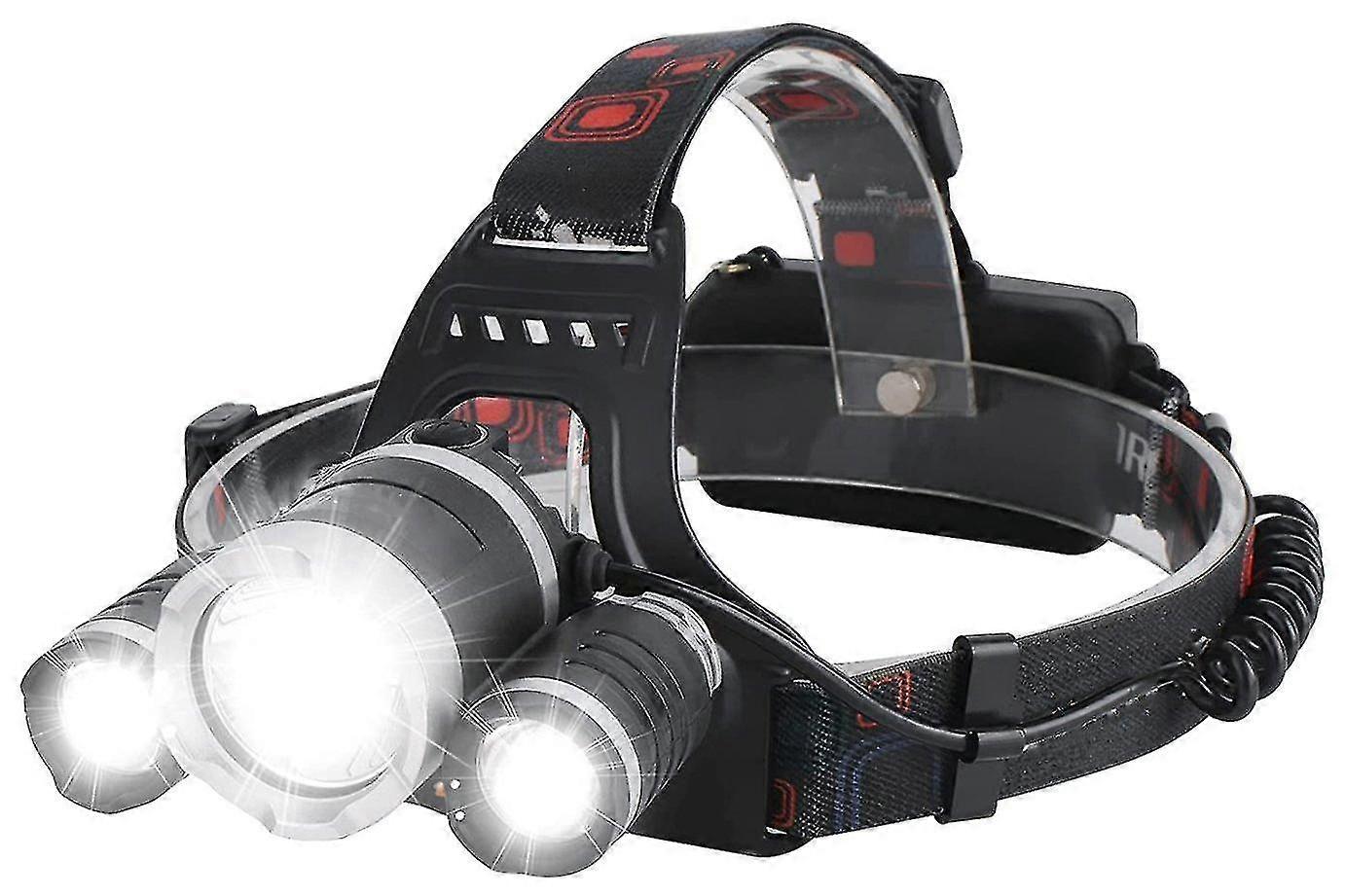 Rechargeable Head Torch Hight Bright 5000 Headlamp 18650 Batteries 4 Modes Headlight Led Usb Headtorch 4 Clips Work Helmet Light(black)