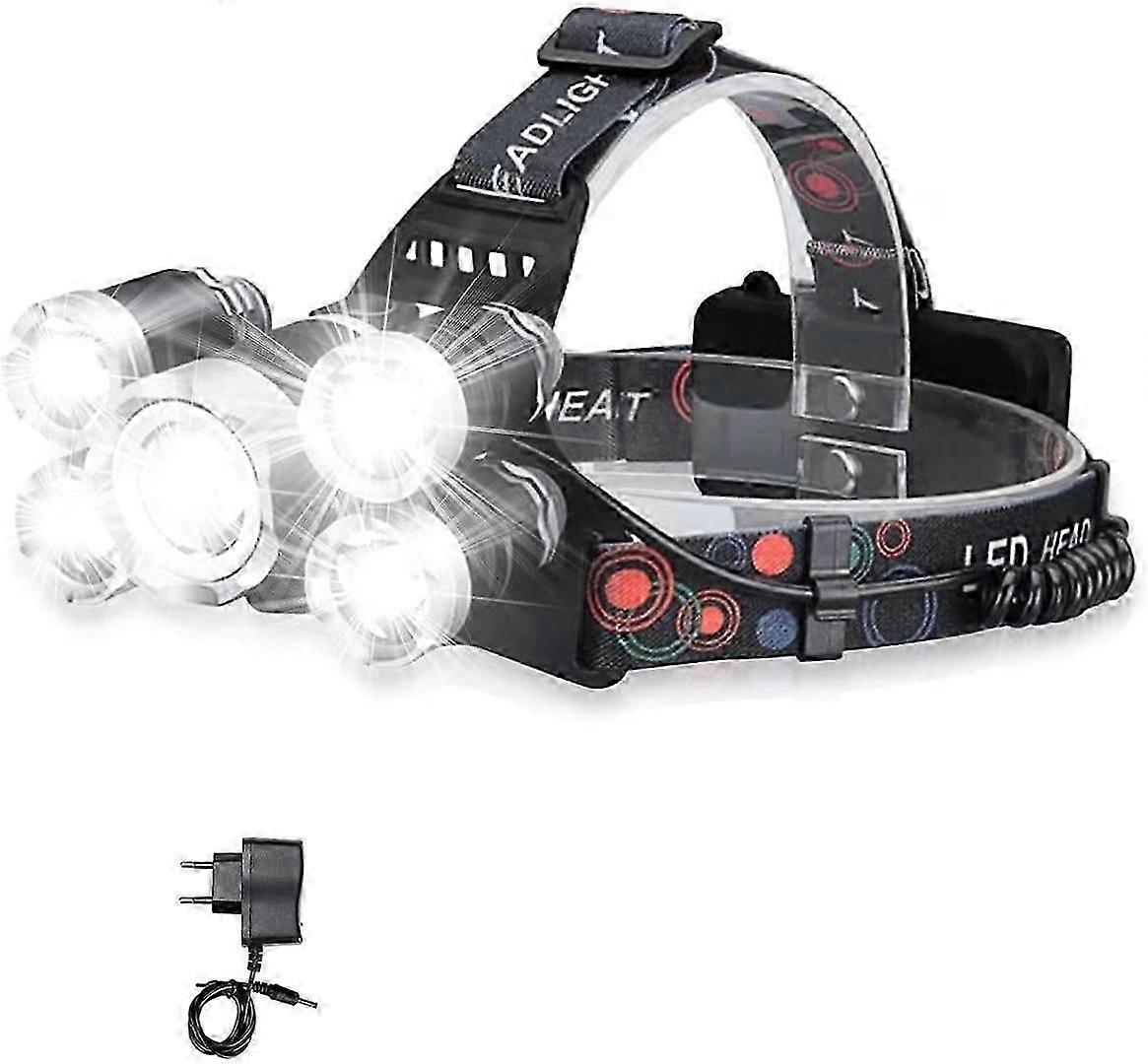 Rechargeable Headlamp - 12000lm Powerful Ultra USB Rechargeable 5 LED Headlamp 4 Light Modes Energy Class A+]