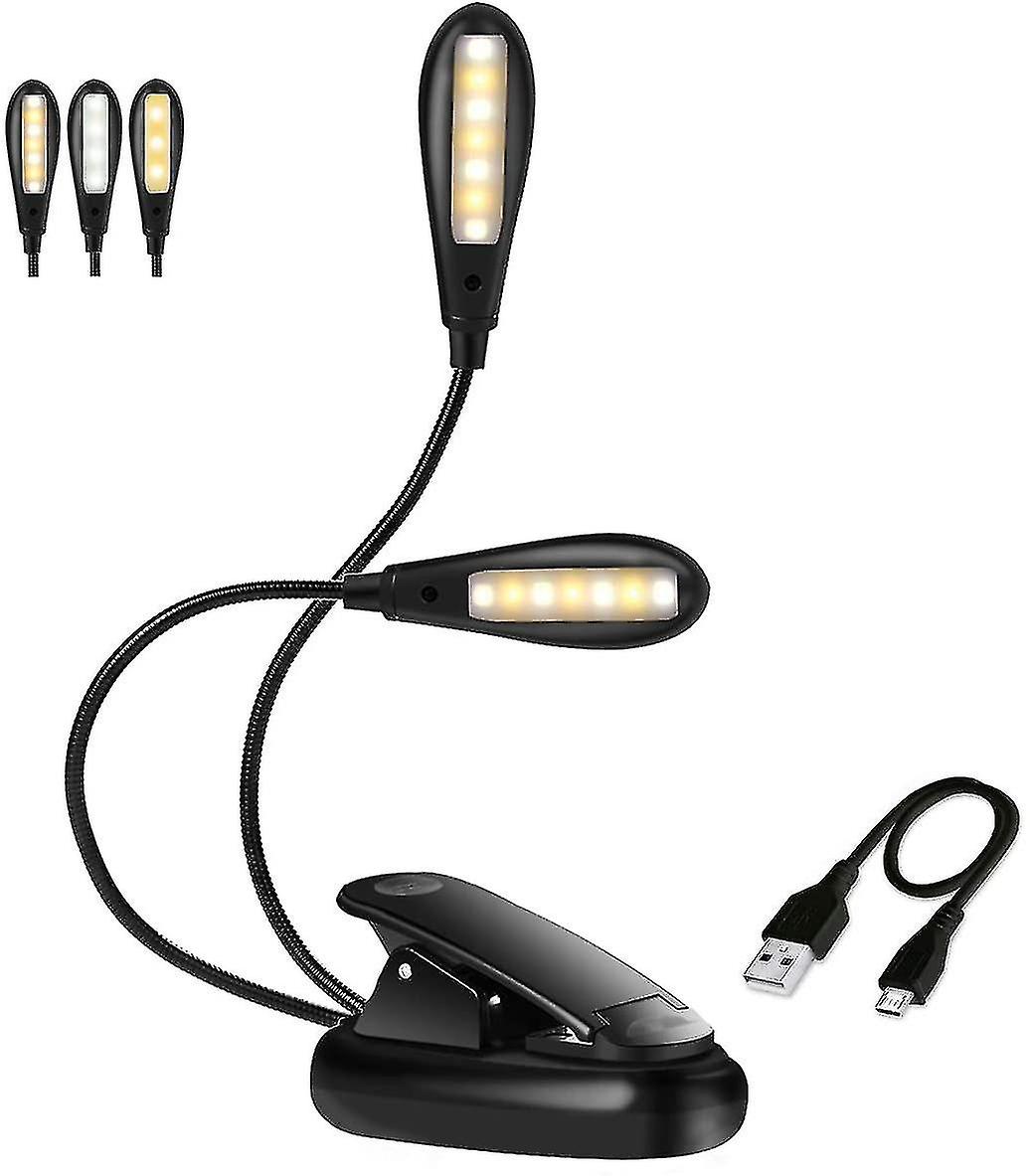 Rechargeable Reading Light 8 Led Book Light Double Head 360 Flexible Reading Lamp Clip For Night Readers