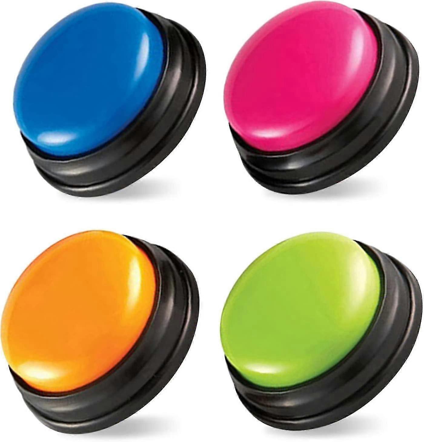 Multifunction game buzzers: This button can record your own voice and you can record after long pressing.It can also be used as a parent-child interactive toy, a children's language education toy, dog buttons talk training,or as a phonograph between family, company and friends. Buzzers are small size, easy to carry and easy to use. Different colors for your choice.Blue, pink, green, orange(optional)Long press for about 6 seconds to record a sound, and the recording time is less than 30 seconds. The diameter of single recordable button is 6.5cm. Specifications: Color: Blue, pink, green, orange(optional) Battery: 2 * AAA(not included) Item type: Button Material: ABS plastic Volume: 80dB Package weight: 300g / 10.5ounces Package size: 160 * 160 * 80mm / 6.29 * 6.29 * 3.14inches