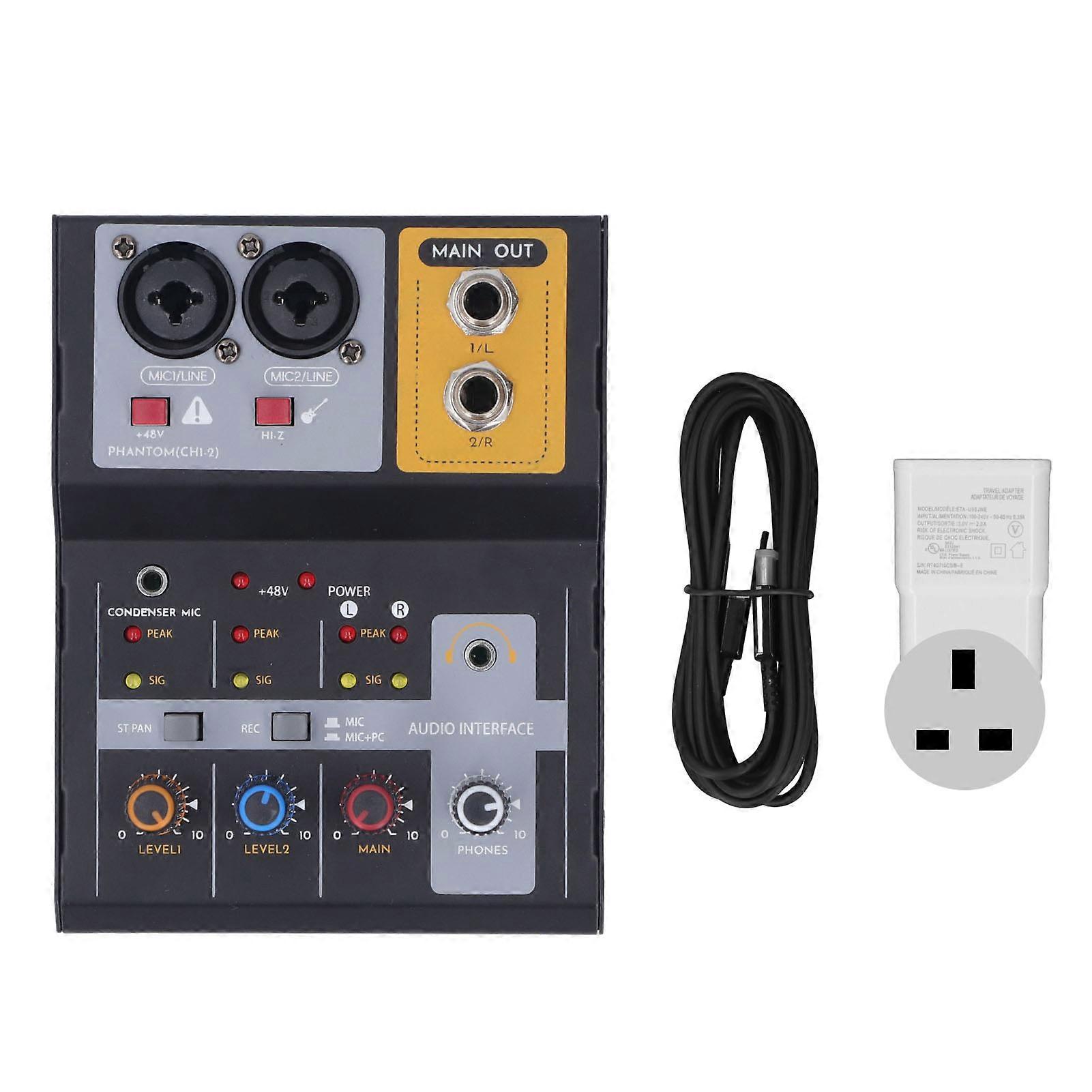 Recording Mixer 2 Channel Low Noise 48V Phantom Power USB External Sound Card for Live Streaming Karaoke Stage 100V?240V UK Plug