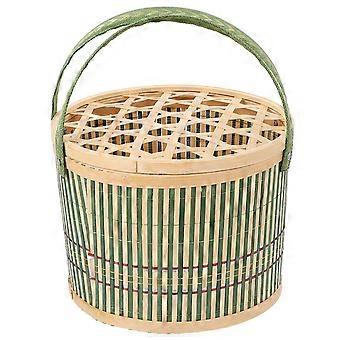Rectangular Bamboo Basket Storage Container For Daily Use 21x21x16cm Green Color 1Pcs