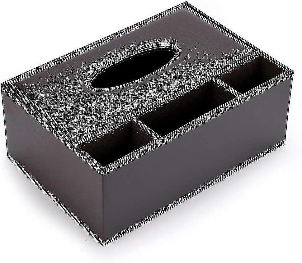 Rectangular Pu Leather Tissue Box Dispenser With 3 Compartments Desk O