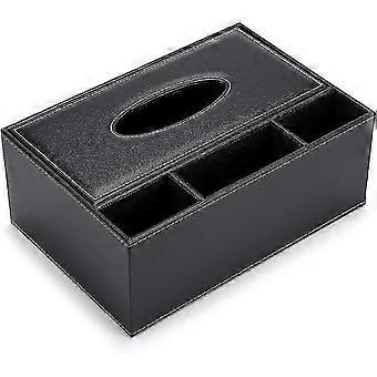 Rectangular Pu Leather Tissue Box Dispenser with 3 Compartments Desk Organizer for Remotes (black)