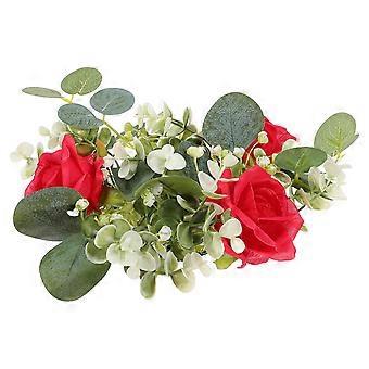 Red Artificial Candle Ring Flower Candle Ring for Decor 1 Piece Wedding Table