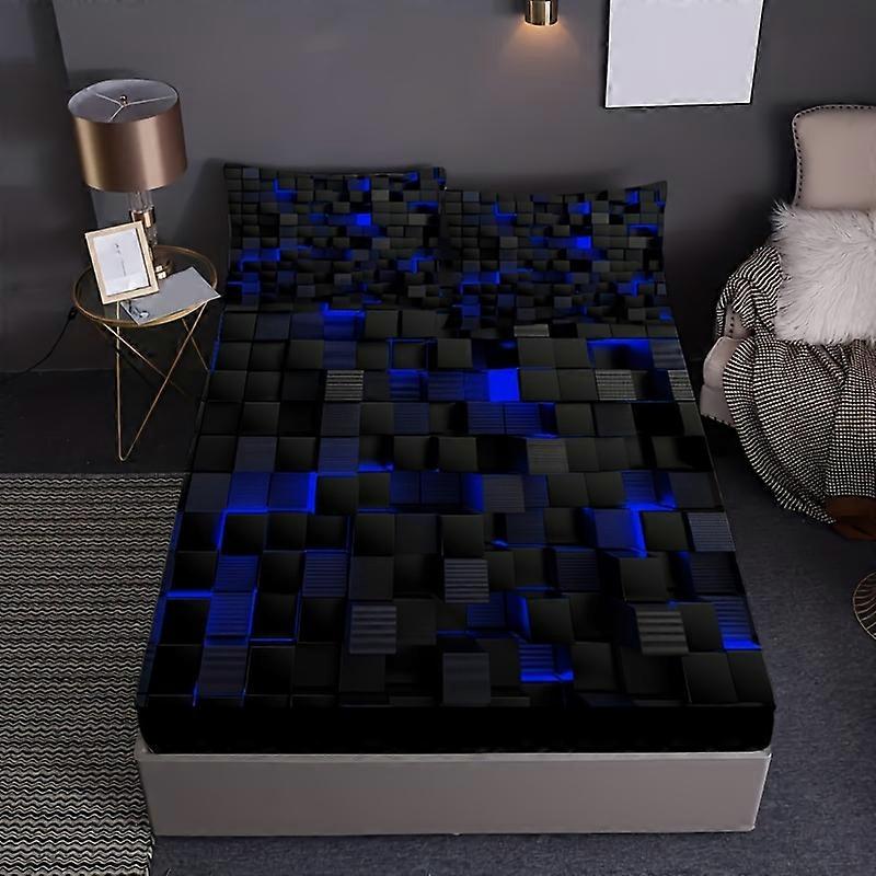Red Grid 3D Visual Geometry Art Print Fitted Sheet Set Mattress Covers Soft Breathable Bedding Set 1* Fitted Sheet+2*Pillowcases