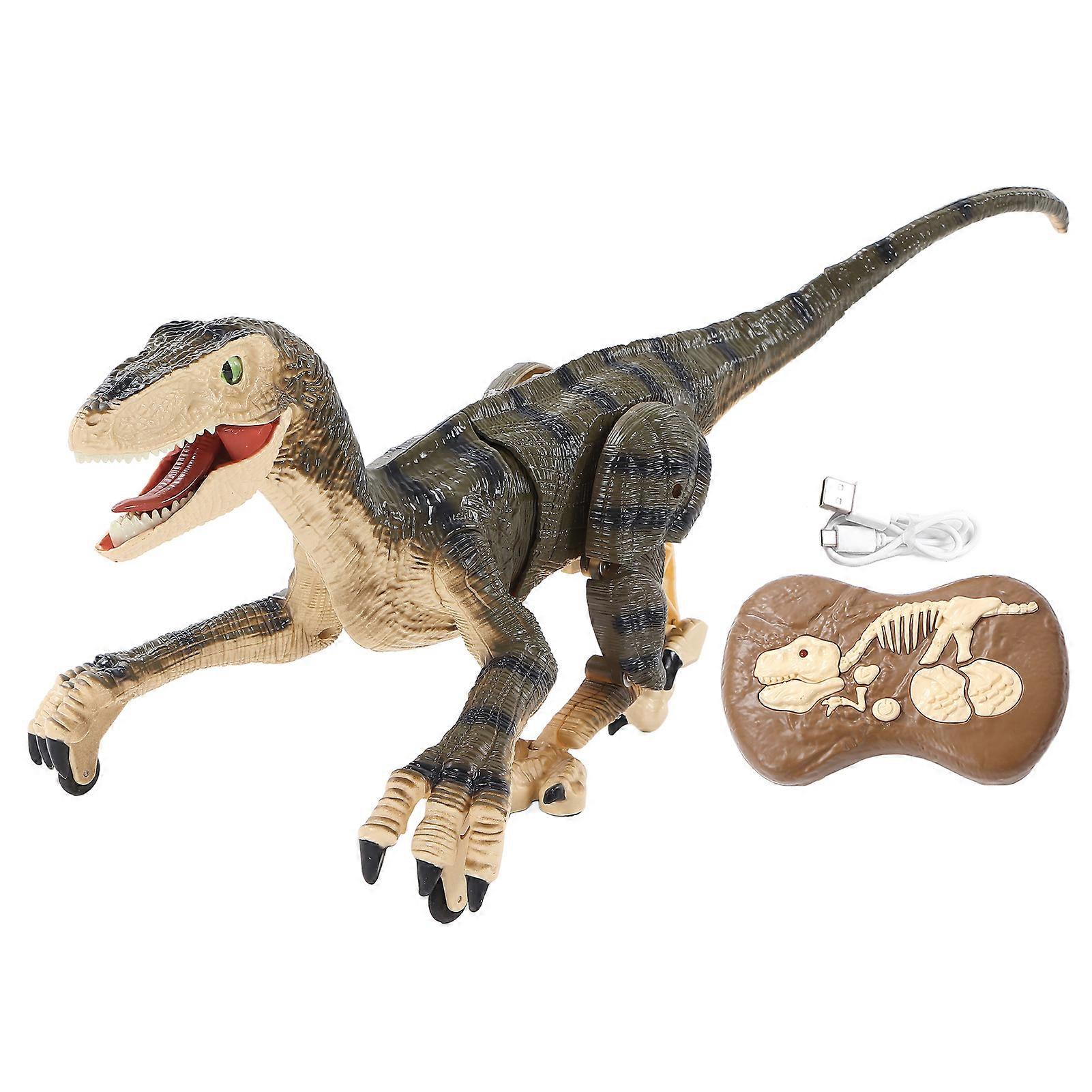 Feature: 1. REALISTIC WALKING DINOSAURS: At the touch of a button, this fantastic dinosaur remote control robot toy lifts its legs and walks like a real dinosaur, unlike other dinosaurs that slide on wheels. Ultra real walking and sounds, flexible movements give children an unparalleled experience. 2. MULTIFUNCTIONAL: Dinosaurs are colorful and realistic in shape, and their jaws, necks, and joints can also move. Individual buttons control forward/backward, turn right/left, and walk 360°, with roars and flashes. Activating the "One Button Demonstration" allows the dinosaur toy to perform a specific action. 3. DURABLE RECHARGEABLE BATTERIES: Remote control requires 2x1.5V 'AA' (not included). Our RC Dinosaur has a built in rechargeable lithium battery of 3.7V 1200mAh. The dinosaur toy can last up to 2 hours when fully charged with a USB cable. Let your child experience longer and uninterrupted playtime. 4. KIDS FRIENDLY MATERIAL: RC dinosaur toy is made of high quality sturdy ABS material, no odor, no fading, no harm to children. Pass rigorous safety testing and meet American toy standards. The large dinosaur toy is 18.1 inches long with realistic scales, horns, teeth and more. 5. BEST ELECTRONIC DINOSAUR TOY FOR KIDS: This perfect prehistoric large dinosaur toy will provide hours of fun for your kids, sparking their imagination and curiosity in the glorious Jurassic dinosaur world. Ideal birthday, halloween and christmas gift for boys and kids over 6 years old. Specification: Item Type: Wireless Remote Control Dinosaur Material: ABS + Electronic Components Length: Approx. 18.1in Remote Control Battery: Requires 2 x AA Batteries (Not Included) Dinosaur Battery: 3.7V 1200mAh, Type 56456 Lithium Battery (Included) Features: Lighting and Sound Effects, Dinosaur Models, One Click Demonstration Applicable Age: 6 Years Old +. Package List: 1 x Simulation Velociraptor1 x Dinosaur Tail1 x Remote Control1 x USB Cable1 x Instruction Manual