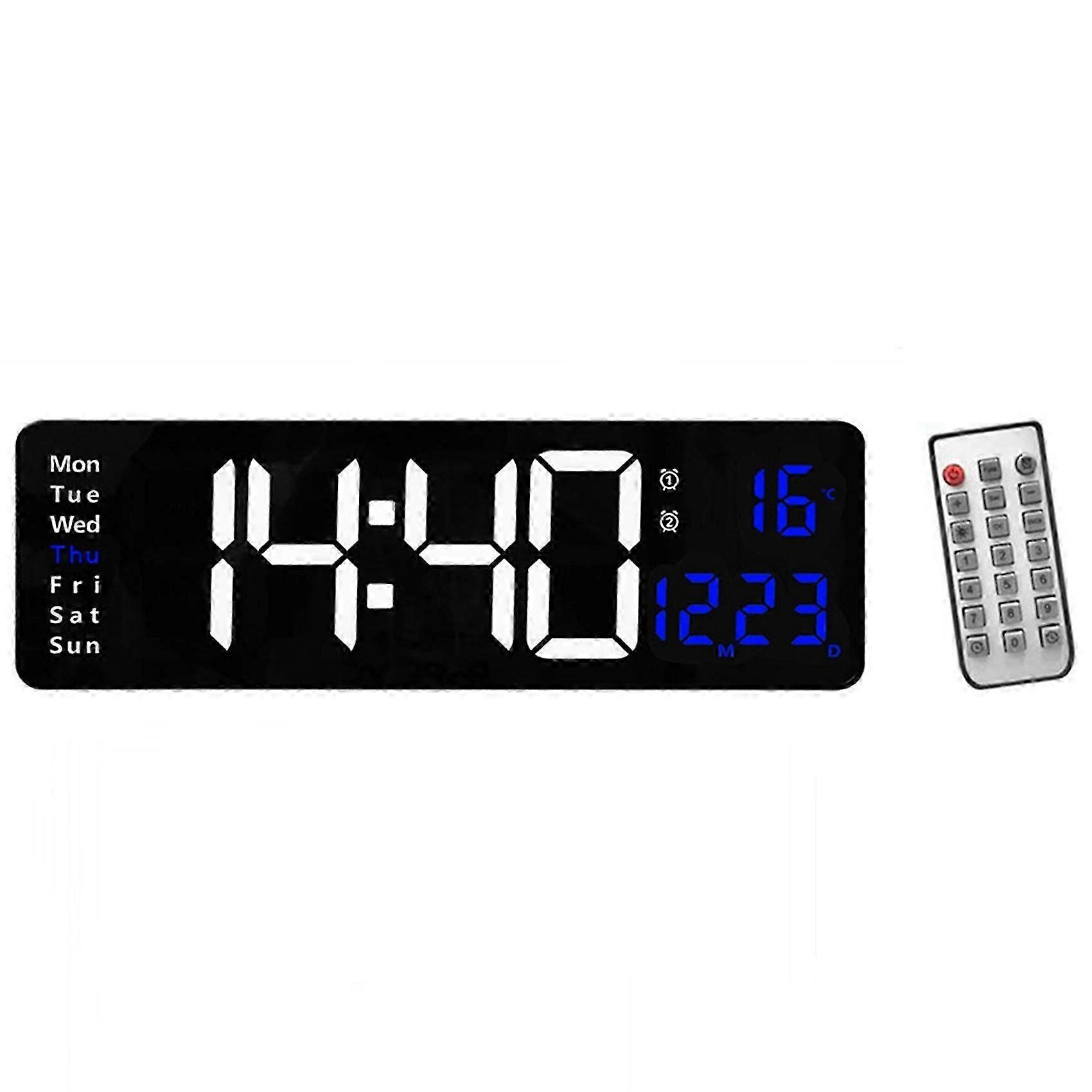 Remote Control Large Electronic Wall Clock Temp Date Power Off Memory Table Clock Wall-Mounted Dual