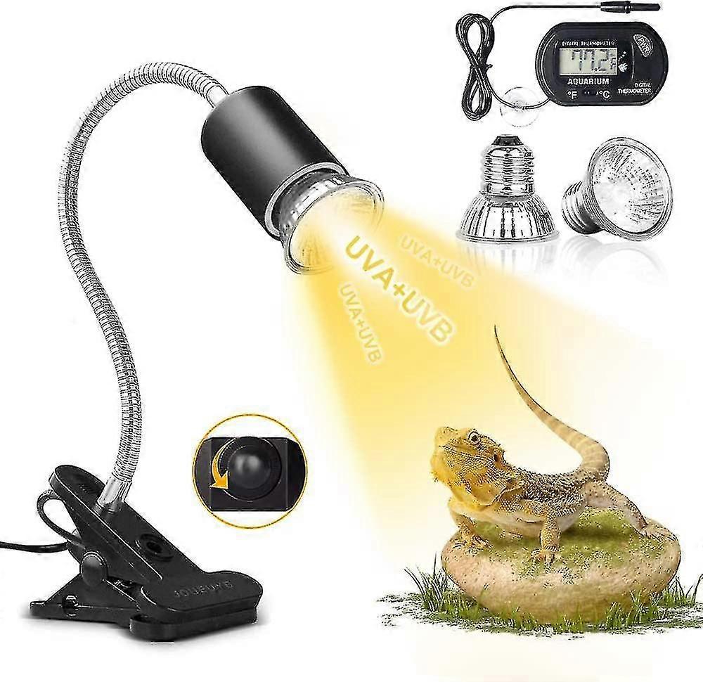 Reptile Heat Lamp, Heating Lamp For Reptiles With Clamp, Uva/Uvb Reptile Light With 360 Rotatable, Adjustable Habitat Heat Lamp For Aquarium Basking L