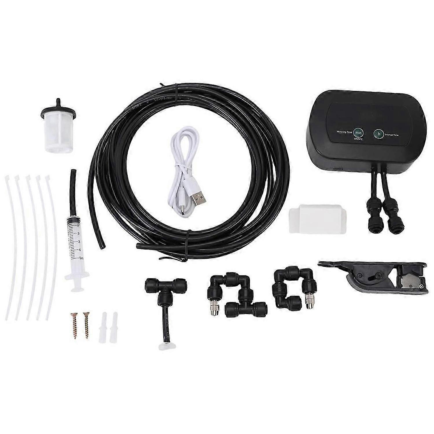 AUTONOMOUS HUMIDITY CONTROL: This advanced reptile misting system is equipped with a smart hygrometer sensor that automatically adjusts the humidity levels in your pet's tank. It ensures optimal conditions by periodically misting, and its memory function retains settings after power interruptions, providing continuous comfort without manual reprogramming. CUSTOMIZABLE MISTING SCHEDULE: Tailor the environment to your reptile's specific needs with adjustable mist timing. Choose from three operational modes-always on, off, or cycle. Set mist durations from 10 to 60 seconds and pause intervals from 2 to 24 hours, all controlled via an intuitive LED touchscreen. ENHANCED MIST DISTRIBUTION: Equipped with two 360 rotating nozzles, this system delivers a fine, even mist across the entire terrarium, mimicking a natural rainforest ambiance. This feature ensures that all areas of the habitat are adequately humidified, promoting health and well-being for amphibious and reptilian pets. MULTIFUNCTIONAL AND ENERGY-EFFICIENT: Beyond reptile care, this versatile humidifier operates on a low-energy 5V USB power supply and consumes less than 5W, making it suitable for a range of applications including garden watering, cooling fans, and greenhouse humidification. EASY SETUP AND OPERATION: The system includes a built-in pump that draws water directly from any container, simplifying installation. A 16ft water pipe can be cut to desired lengths using the included cutter, and the connector with accessories ensures a hassle-free setup, allowing you to create a perfect habitat with ease.<br><br>Color: Black Material: ABS<br><br>Package Contents: 1 x USB Cable 1 x Controller 1 x 5m Long Water Hose 1 x Antisiphon 1 x Pipe Cutter 2 x Atomize Nozzles 5 x Cable Ties 1 x Syringe 1 x Filter 2 x Screws 2 x Expansion Tubes 1 x U Shaped Hook<br><br>Only the above package content, other products are not included. Note: Light reflection and different displays may cause the color of the item in the picture a little different from the real thing. The measurement allowed error is +/- 1-3cm.