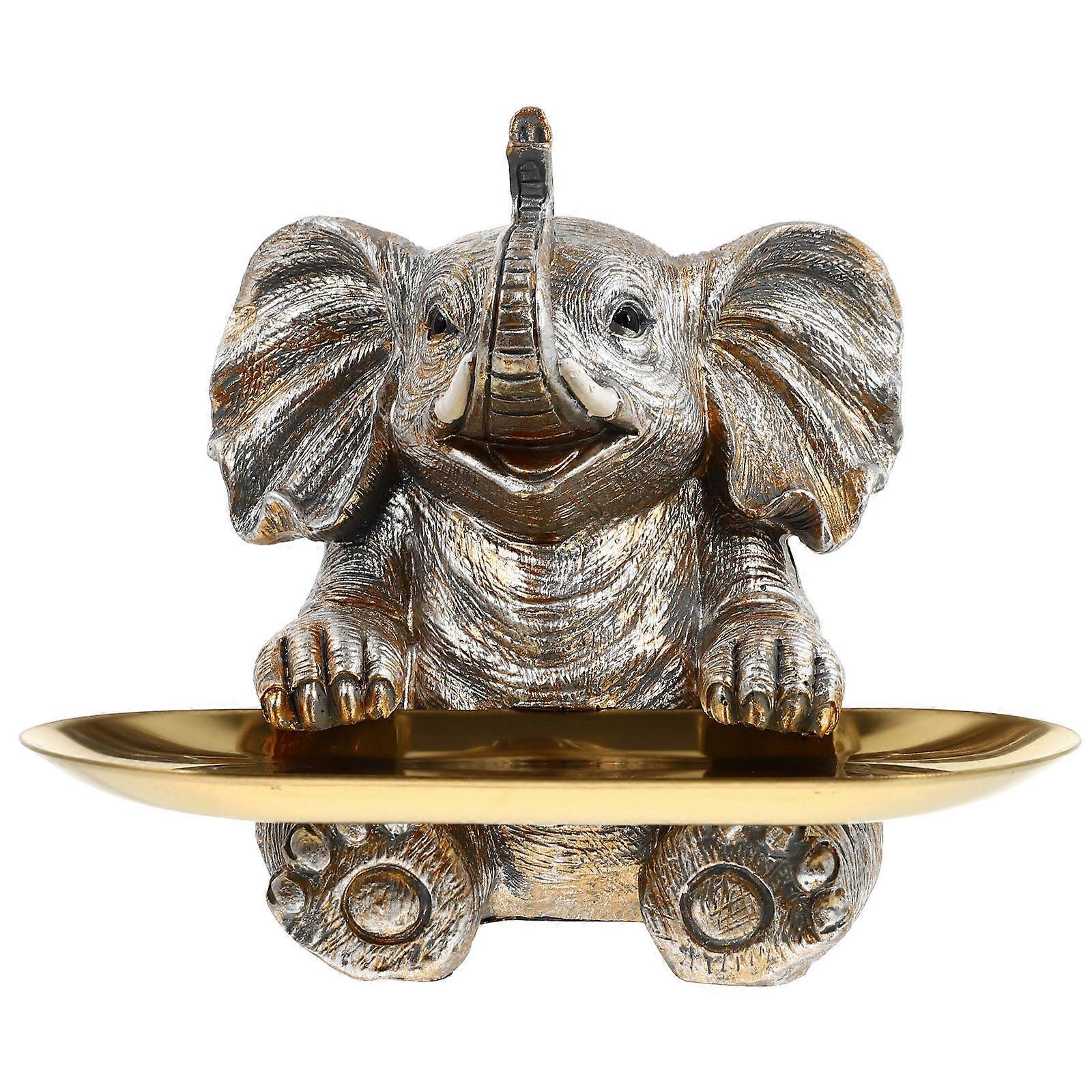 Resin Elephant Tray Decorative Bird Feeder Function 1Set Silver