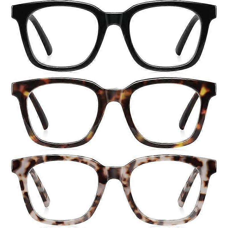 RESJOK 3 Pairs Reading Glasses for Women - Blue Light Blocking Magnifying Readers,Leopard Square Anti-Glare Computer Eyeglasses Multi-01