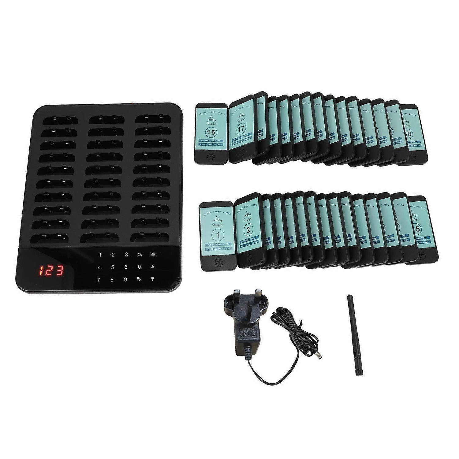 Restaurant Pager System with 30 Beepers 500m 1 to 999s Time Setting Vibration Flashing 24 Hours Stan