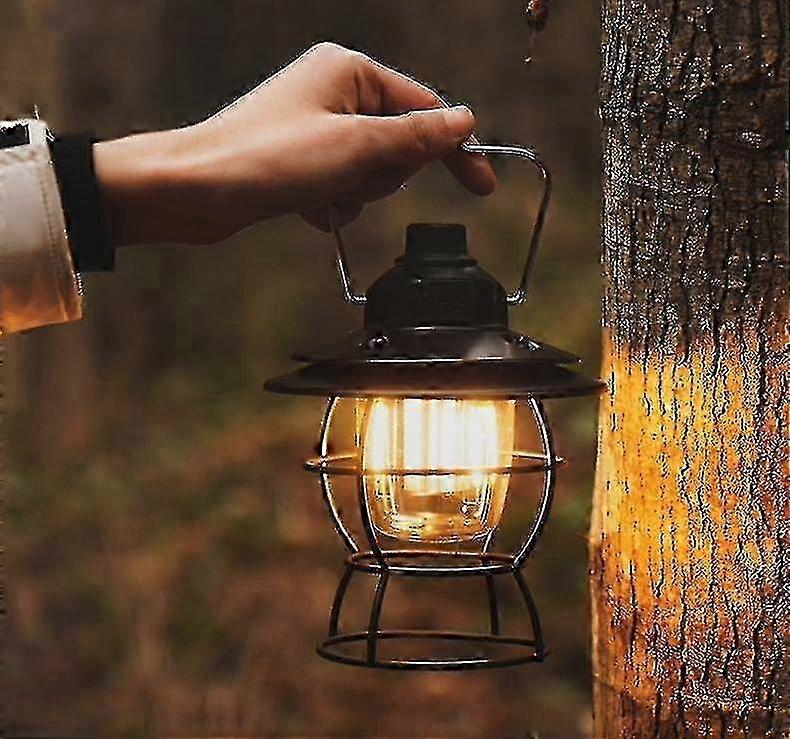 Retro Style LED Camping Lantern, Type-C Rechargeable, Dimmable Portable Outdoor Lantern for Camping and Hiking