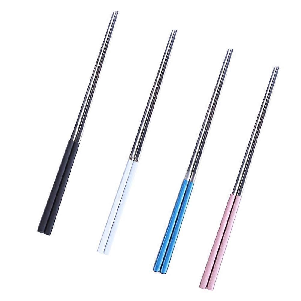 Reusable 304 Stainless Steel Polished Square Chopsticks For Home Use Assorted Color Nonslip 4 Pairs