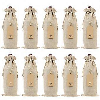Reusable Burlap Wine Bags with Drawstrings, Ropes & Tags - 10 Pack Bottle Covers
