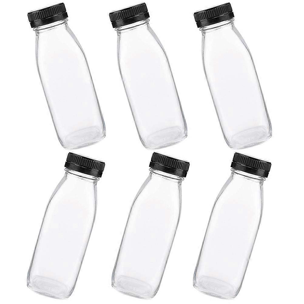 Reusable Glass Juice Bottles for Storage with Leakproof Lids Transparent Material 6 Pieces