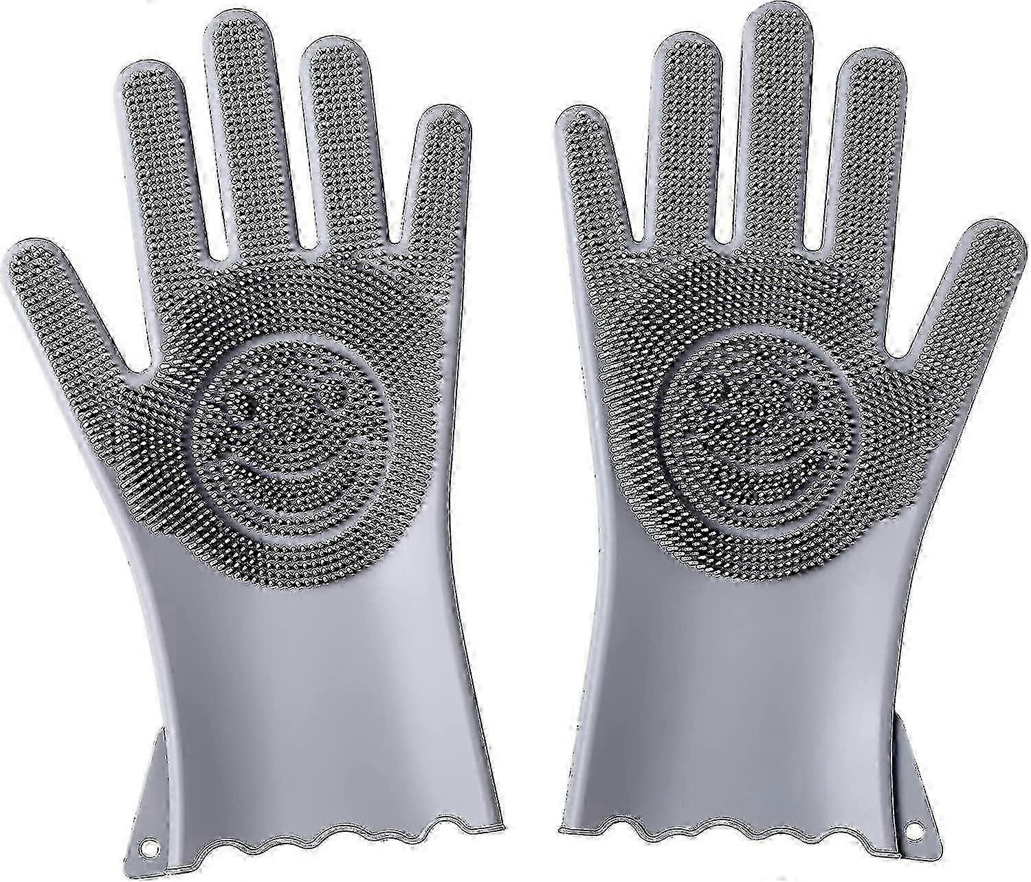 Reusable Multifunctional Silicone Kitchen Cleaning Gloves in Gray