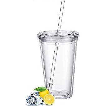 Reusable Plastic Cups,acsergery Double-walled Transparent Drinking Cup With Straw