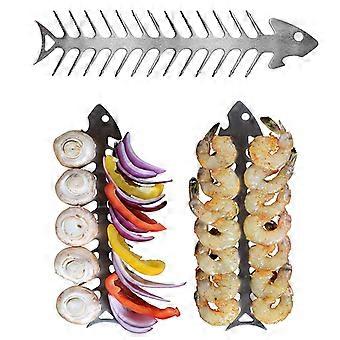 Reusable Roaster Fork Metal Fish Bone Shape Barbecue Skewer Roasting Skewers For Camping Grilling Skewers Campfire BBQ Tool