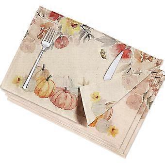 Reversible Fall Placemats Set of 4 Pumpkin Cloth Place mats Farmhouse Dining Table Place mats, Machine Washable Table Mats for Kitchen,Yellow