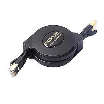 REXLIS 1.5m CAT7 10 Gigabit Retractable Flat Ethernet RJ45 Network LAN Cable(Black)