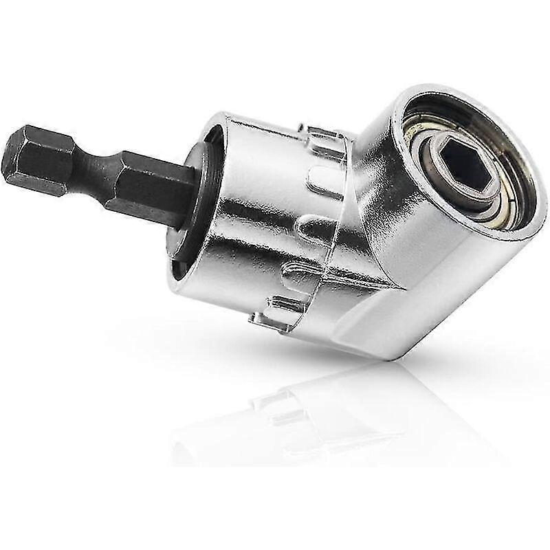 105 Angle Extension Made of chrome vanadium steel, high hardness angle drill bit holder, rustproof. durable die-cast body with 3 ball bearings for long life. Built-in strong magnet for good holding power, this right angle drill attachment is easy to use and avoids falling off.105 angle extension 1/4 inch 6 mm adapter 1/4 Inch Hex Driver Socket Holder Hex drive shaft is quick change compatible and fits most power drills, rechargeable drills, hand wrenches and screwdriver chucks . Magnetic 1/4 inch hex socket accepts and holds standard drill bits and screwdriver bits.Angle extension gears are die-cast mounted with 3 bearings durable ball bearings. Built-in strong magnetic grip holds standard hex drill bits and drive bits, prevent dropping. 105 designs for tight spaces, extends the power of a cordless screwdriver, maximum torque: 10n/m right angle head, designed for tight spaces, extends the power of a cordless screwdriver. Extends the power of cordless screwdrivers by 100 in/lbs. torque, 400 rpm.105 degree angle extension, in which you use when you have hard to reach places, 360 degree adjustable thumb strap.It can connect a hand drill and a manual wrench. The function head is equipped with a locking and magnetic device, to ensure that the sleeve does not fall off. Built-in strong magnet for good holding power, accepts all standard 1/4'' hex shank bits. Applies to all power drills and socket wrenches, making it easy to reach inaccessible or tight spaces.Durable, long-lasting and easy to use: lightweight, fast, connects to standard hex screwdrivers, impact hole saws and drill bits.Quantity shipped: 1 piece.