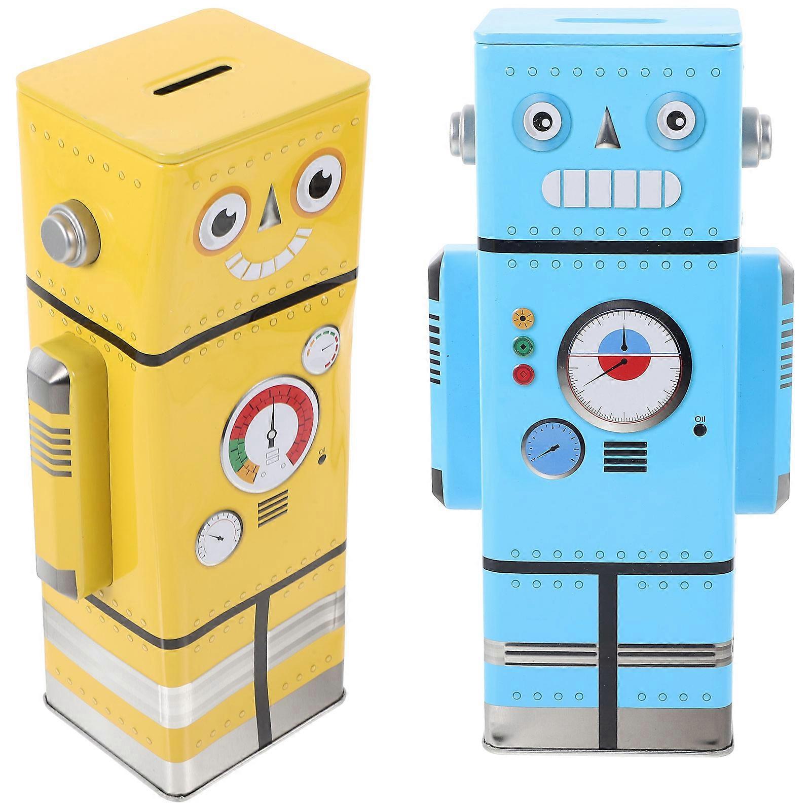 Robot Coin Bank Iron Piggy Bank for Decor 2Pcs Assorted Colors