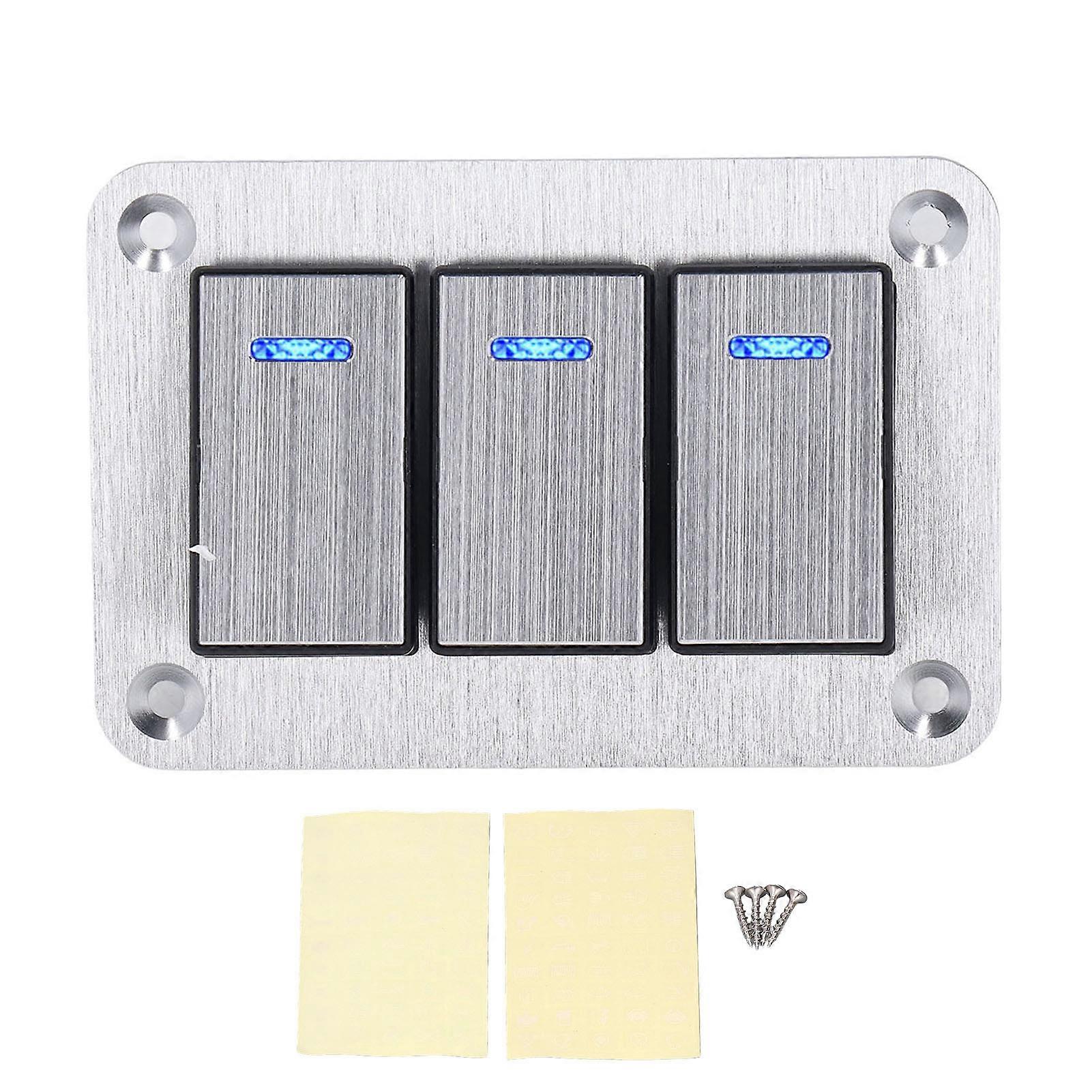 Rocker Switch Panel 3 Way Wear Resistance Sturdy Switch with Blue LEDs for Car RV Yacht