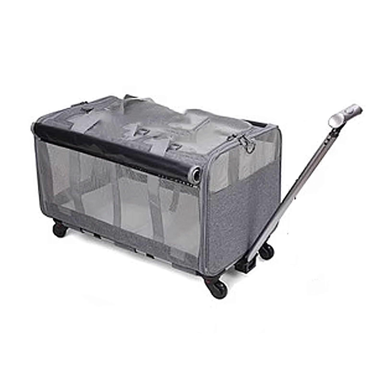 Rolling Cat Carriers 2-Cat Capacity With Wheels And Handle, Dual-Compartment Foldable Ventilated Pet Carrier Gray