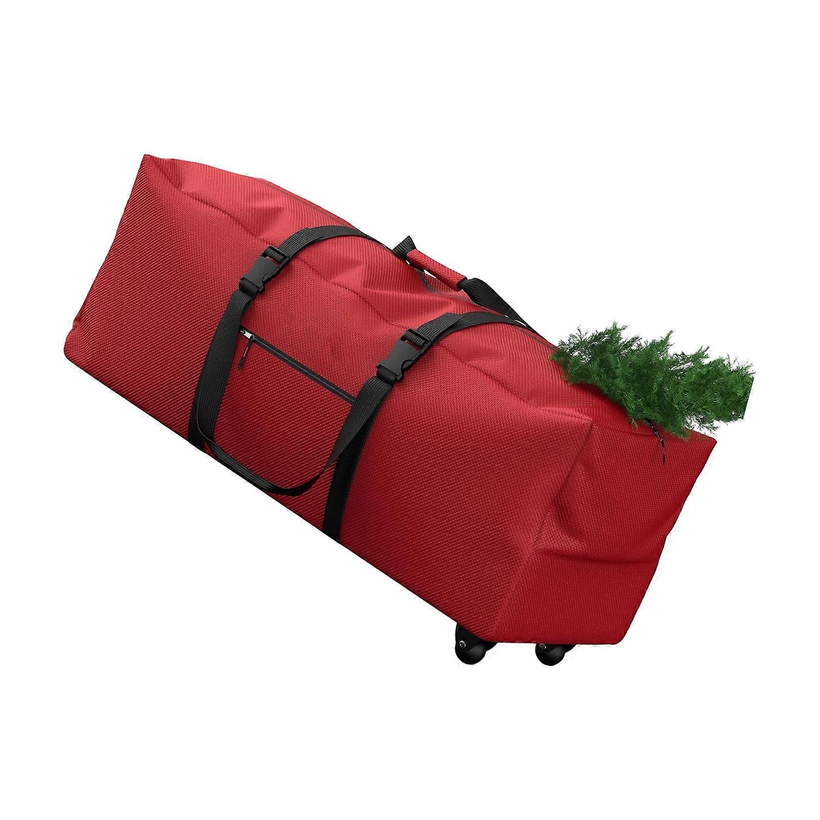 Rolling Christmas Tree Storage Bag 7.5/9Ft - Oxford Extra Large Heavy Duty with Adjustable Straps, Fits Artificial Tree & Twin Slide Fasteners Red 1