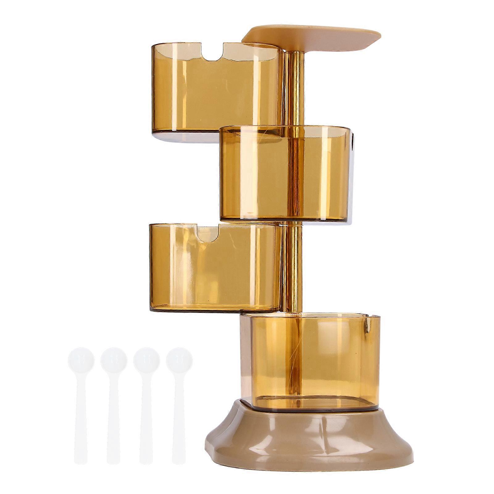 Rotating Spice Box Plastic 4 Layer Salt Sugar Pepper Pots Sealing Seasoning Box for Home Kitchen