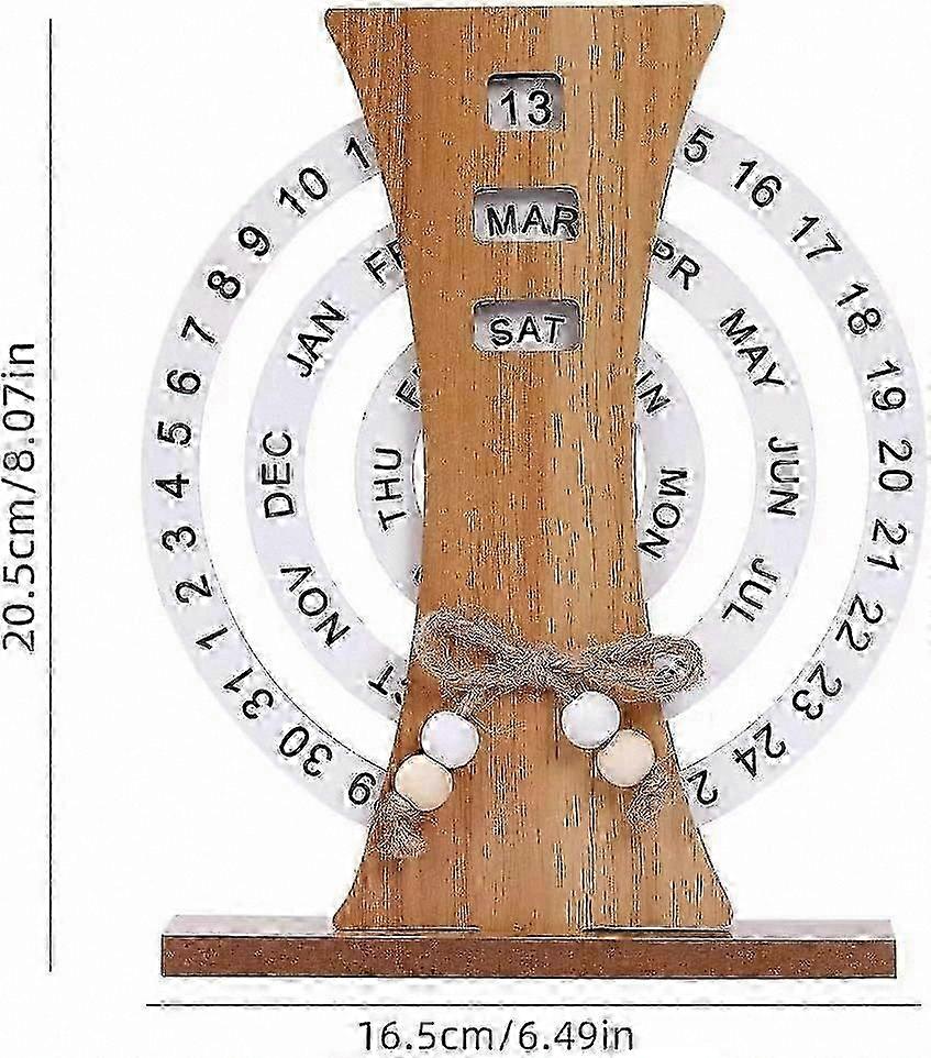 Rotating Wooden Desk Calendar with Month, Week, and Date Display for Office or Home Use hwy