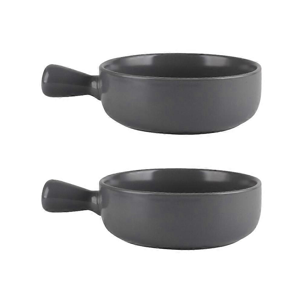 Round Ceramics Baking Plate for Baking Use 6Pcs with Handle Grey Color
