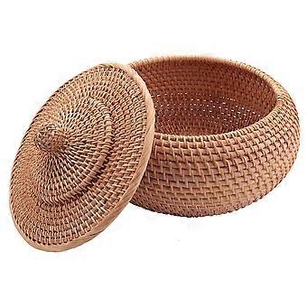 Round Rattan Box,Wicker Fruit Basket with Lid Basket for Bread,Snack