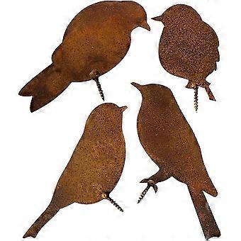 Rusty Birds With Screw For Screwing Into Wood, 4 Patina Birds Garden Stake Rust Rusty Garden Decoration Squirrel Rust