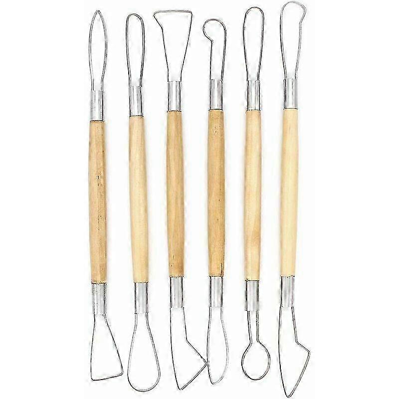 Sculpting Tools, 6 Pcs Double Ended Sculpting Tool Clay Wooden Handle Pottery Carving DIY Tool