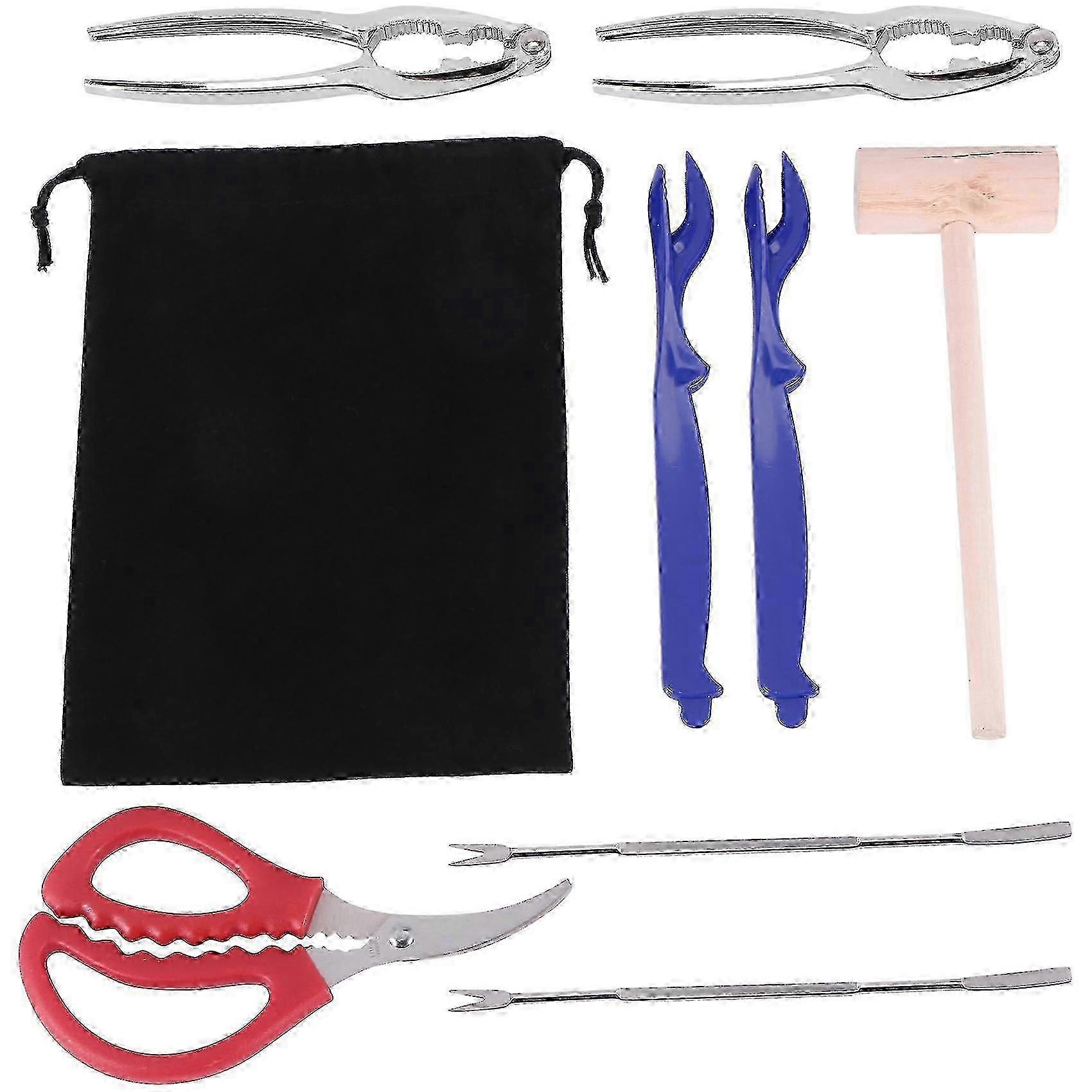 Seafood Set with 8 Pcs Including Crab Crackers, Lobster Shells, Crab Leg Forks & Mallet for Cooking Enthusiasts