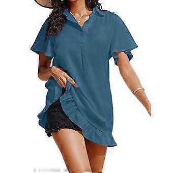 Womens Swimsuit Cover Up Shirt Ruffle Short Sleeve Bathing Suit Coverups V Neck Beach Bikini Dress Green XL