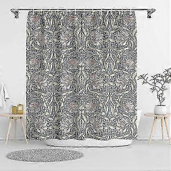 Kukkasuihkuverho Naiset esteettinen suihkuverho Ruusu kukka kukka perhonen luonnos kylpyverho Valkoinen kangas vedenpitävä kylpyhuoneen sisustus Curt