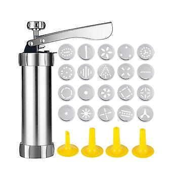 बिस्किट प्रेस गन स्टेनलेस स्टील बिस्किट प्रेस 20 बिस्किट मोल्ड पैन और 4 पाइप्ड नोजल के साथ