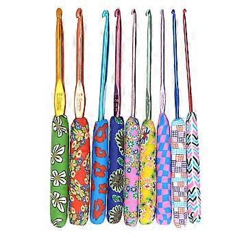 9kpl virkkuukoukut värillinen muovinen ergonominen kahva alumiini tunnistettava koko DIY neulepuikot setti