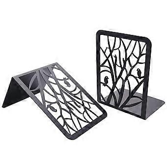 2pcs Polished Metal Bookends, Simple Design Black Book Stand for Library, Students, Office Desk Organization
