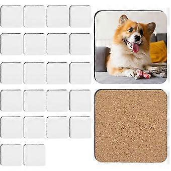 60 kpl sublimaatiopainatus neliönmuotoisia lasinalusten aihioita, irtotavarana korkkitaustalla, MDF-sublimaatiolasien aihioita, korkki 3,86 x 3,86 tuumaa