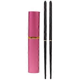 Taittuvat syömäpuikot kotelolla, kannettavat eebenpuunväriset matkasyömäpuikot, alumiinia, 20,7 x 0,5 x 0,5 cm, 1 setti